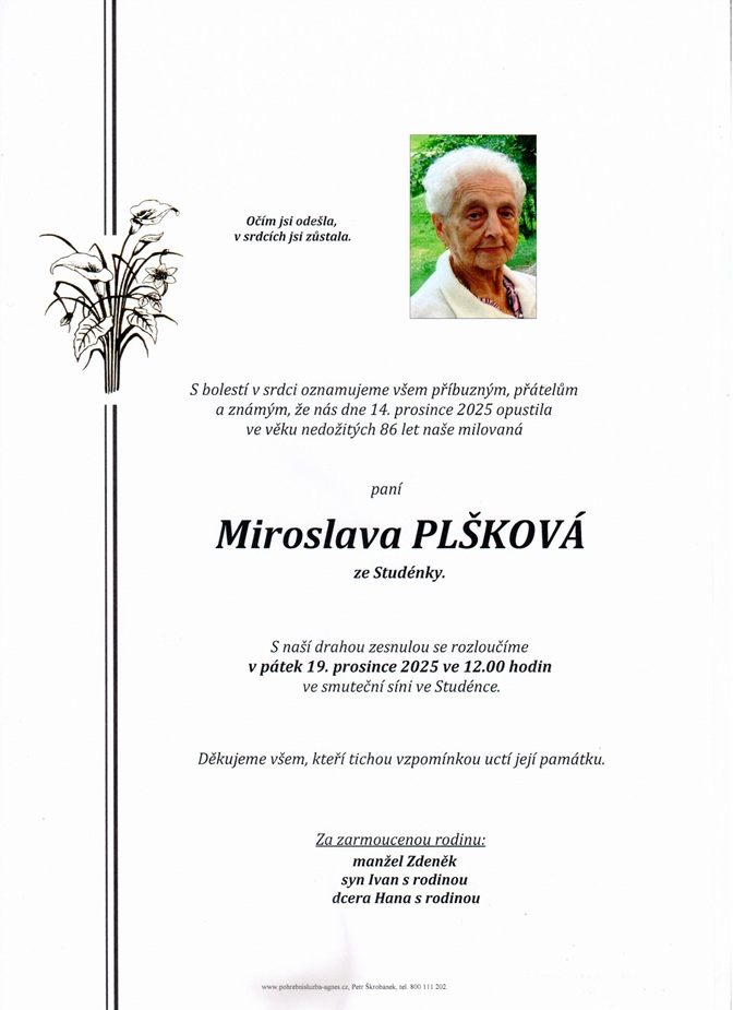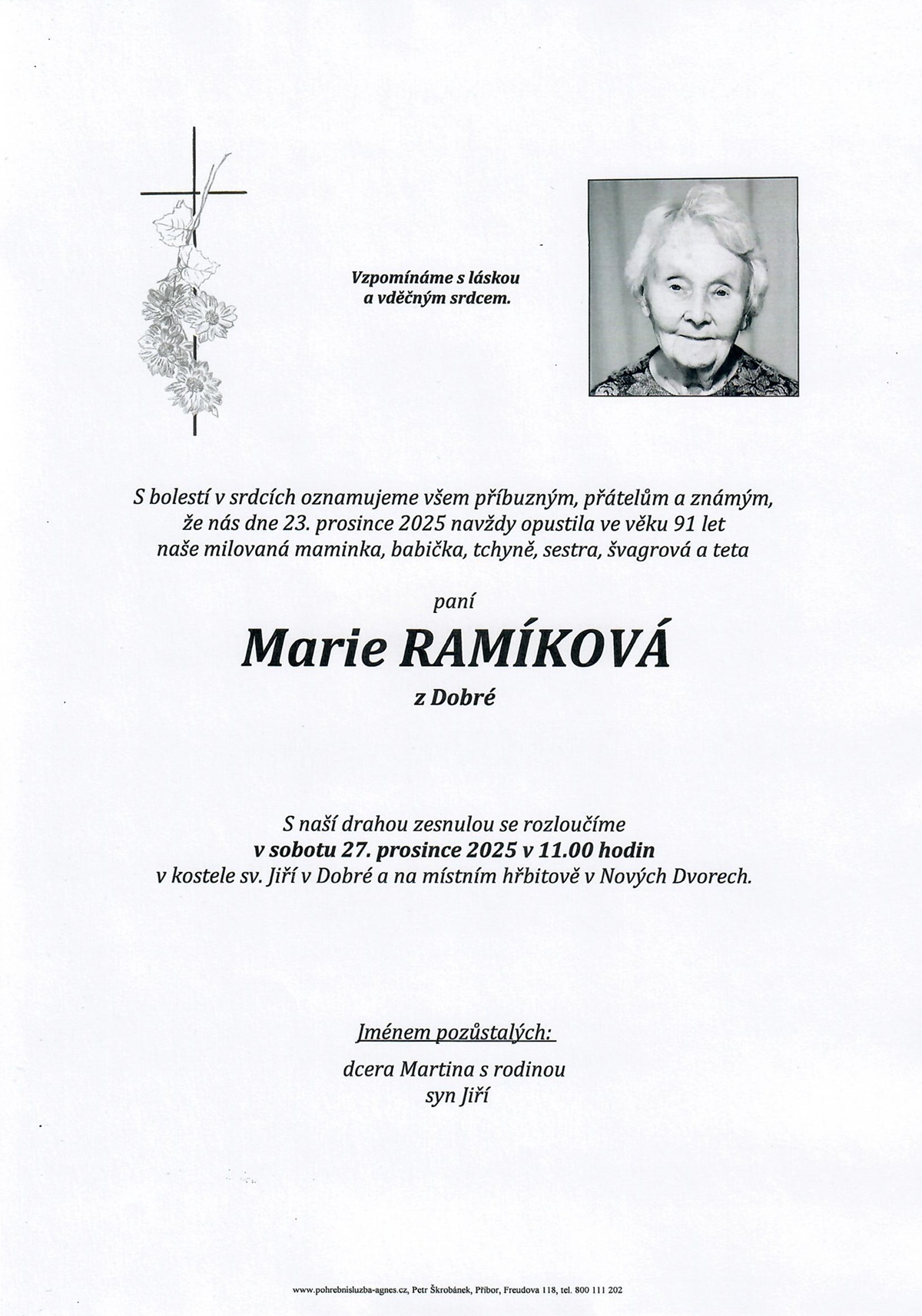 Přehled pohřbů a rozloučení obsahuje pouze ty obřady, u kterých objednavatel vyjádřil souhlas s uveřejněním.