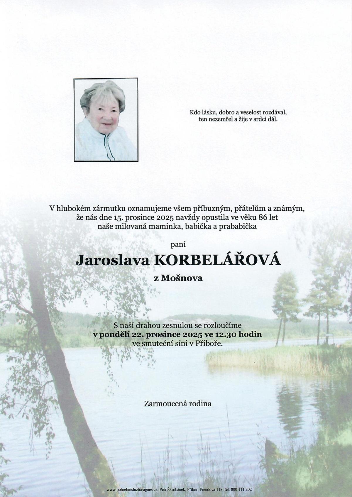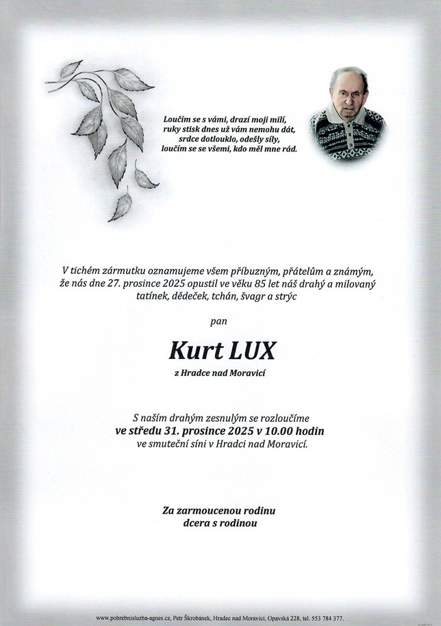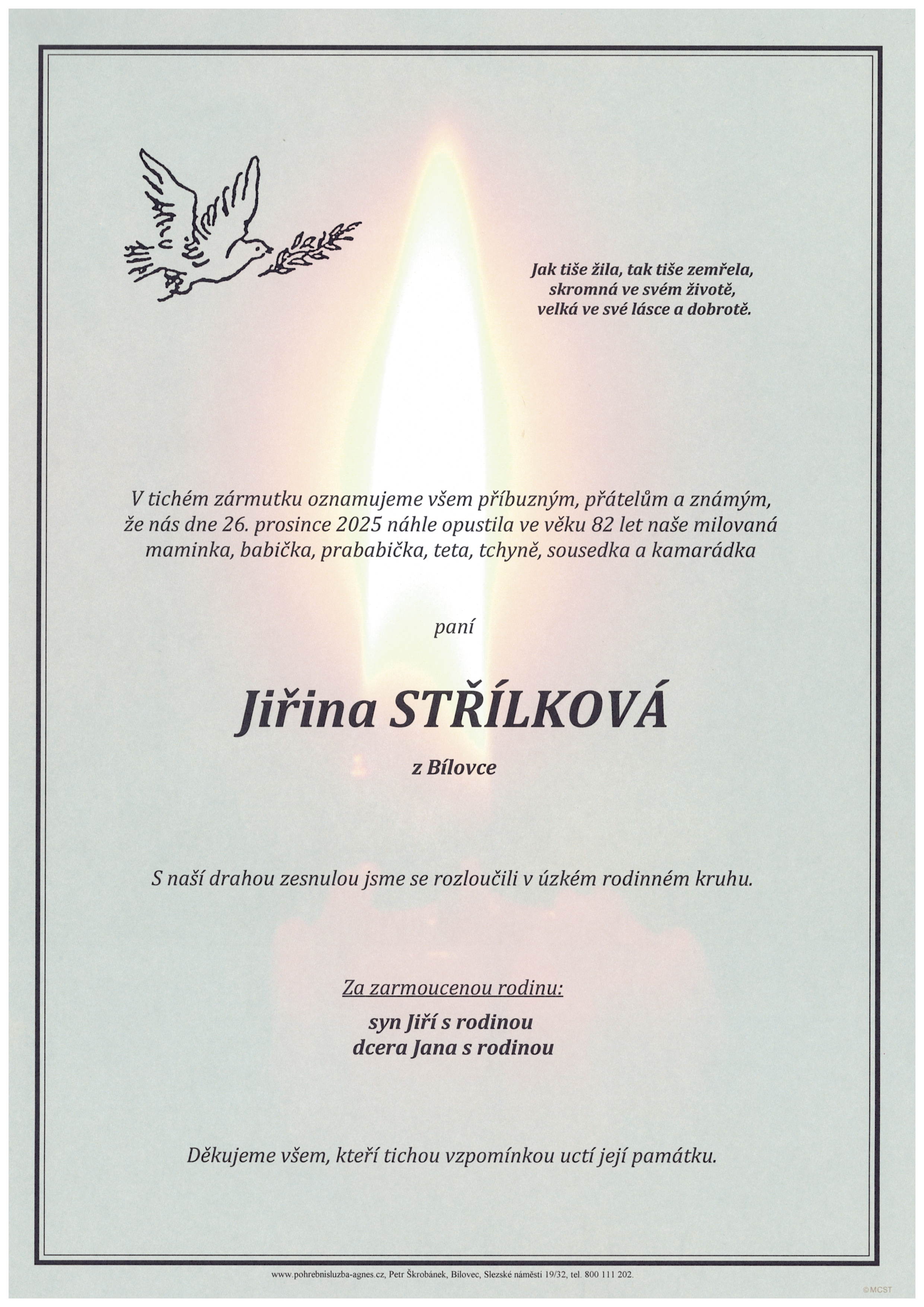Prosinec 2025 | Pohřební služba St. Agnes, Bílovec, Opava, Hradec nad Moravicí, Studénka, Příbor, Fulnek