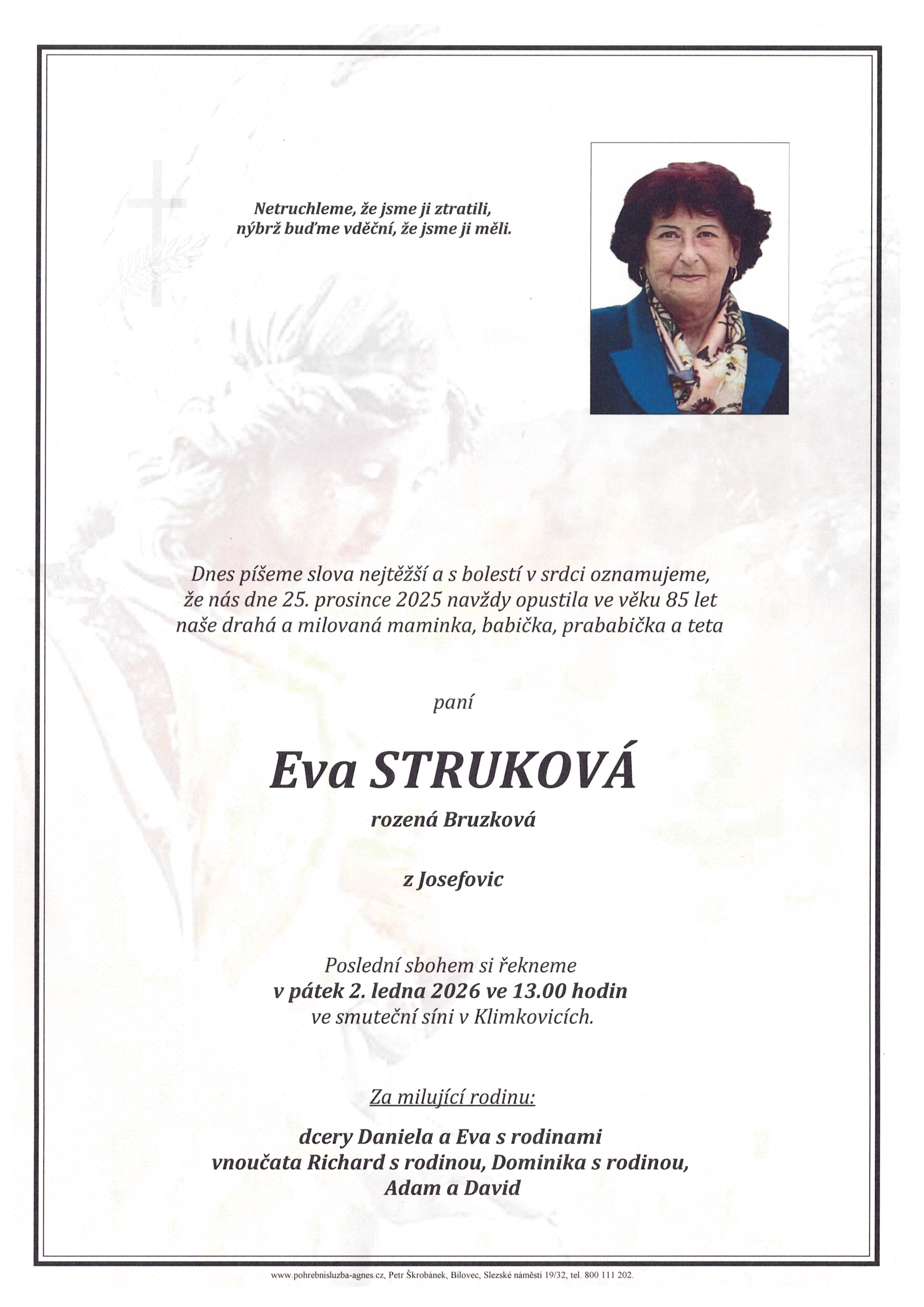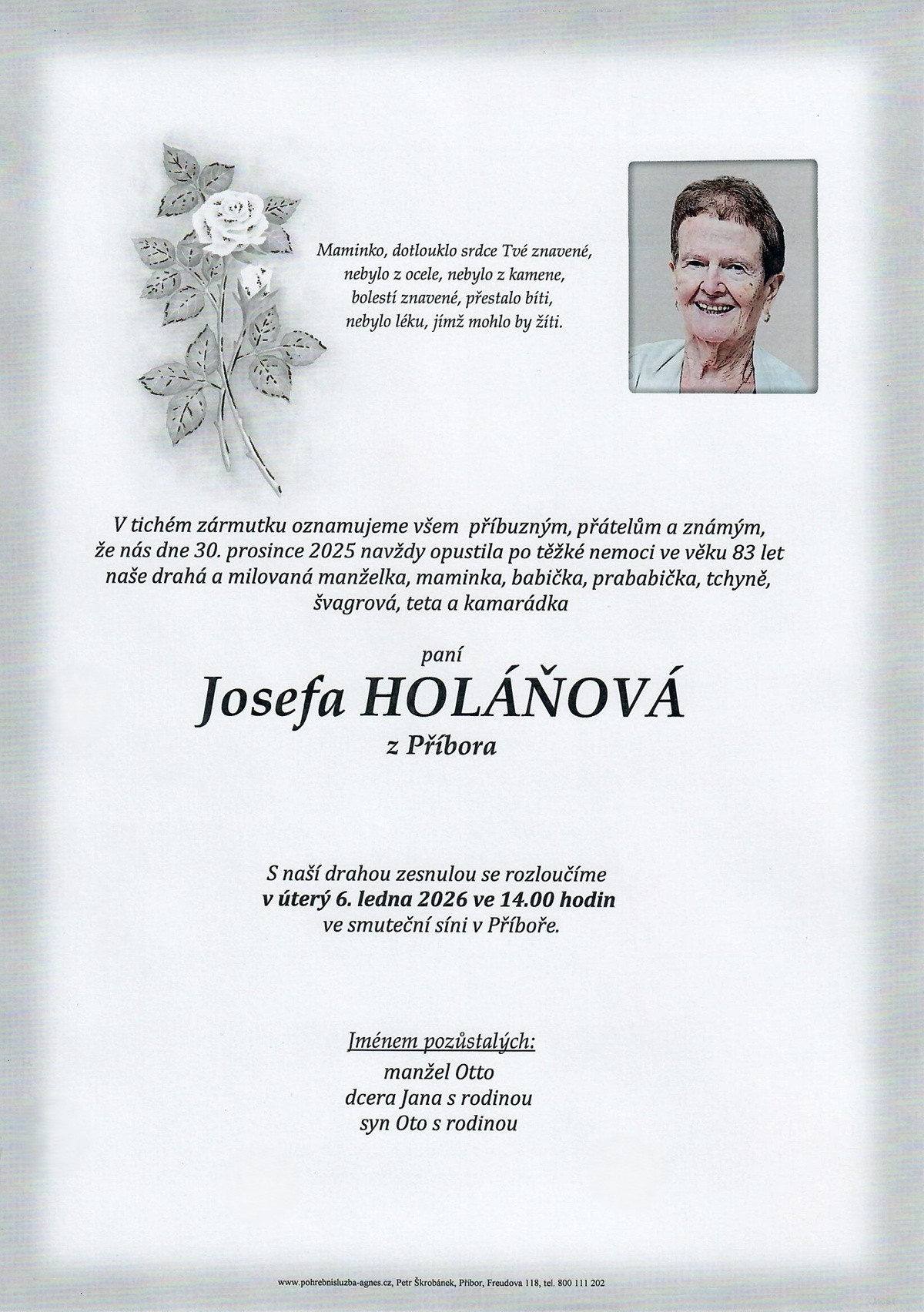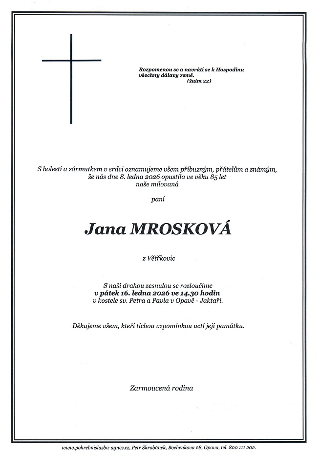 Leden 2026 | Pohřební služba St. Agnes, Bílovec, Opava, Hradec nad Moravicí, Studénka, Příbor, Fulnek