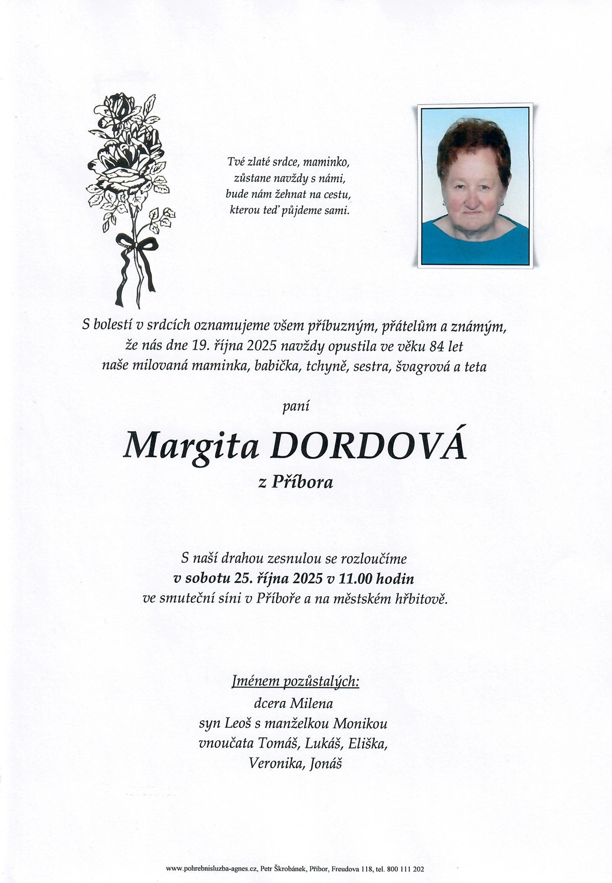 11.00 hodin Smuteční síň Příbor - Margita Dordová, 84 let