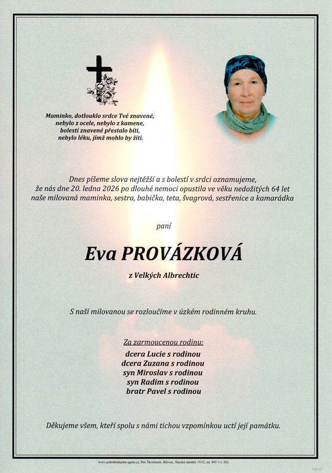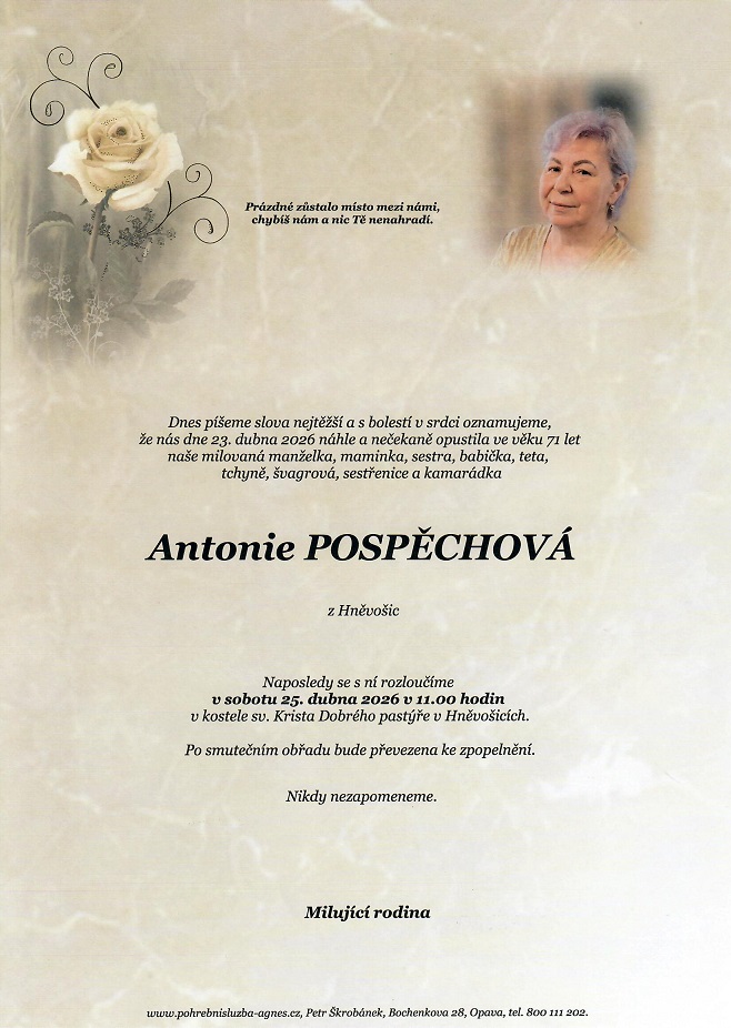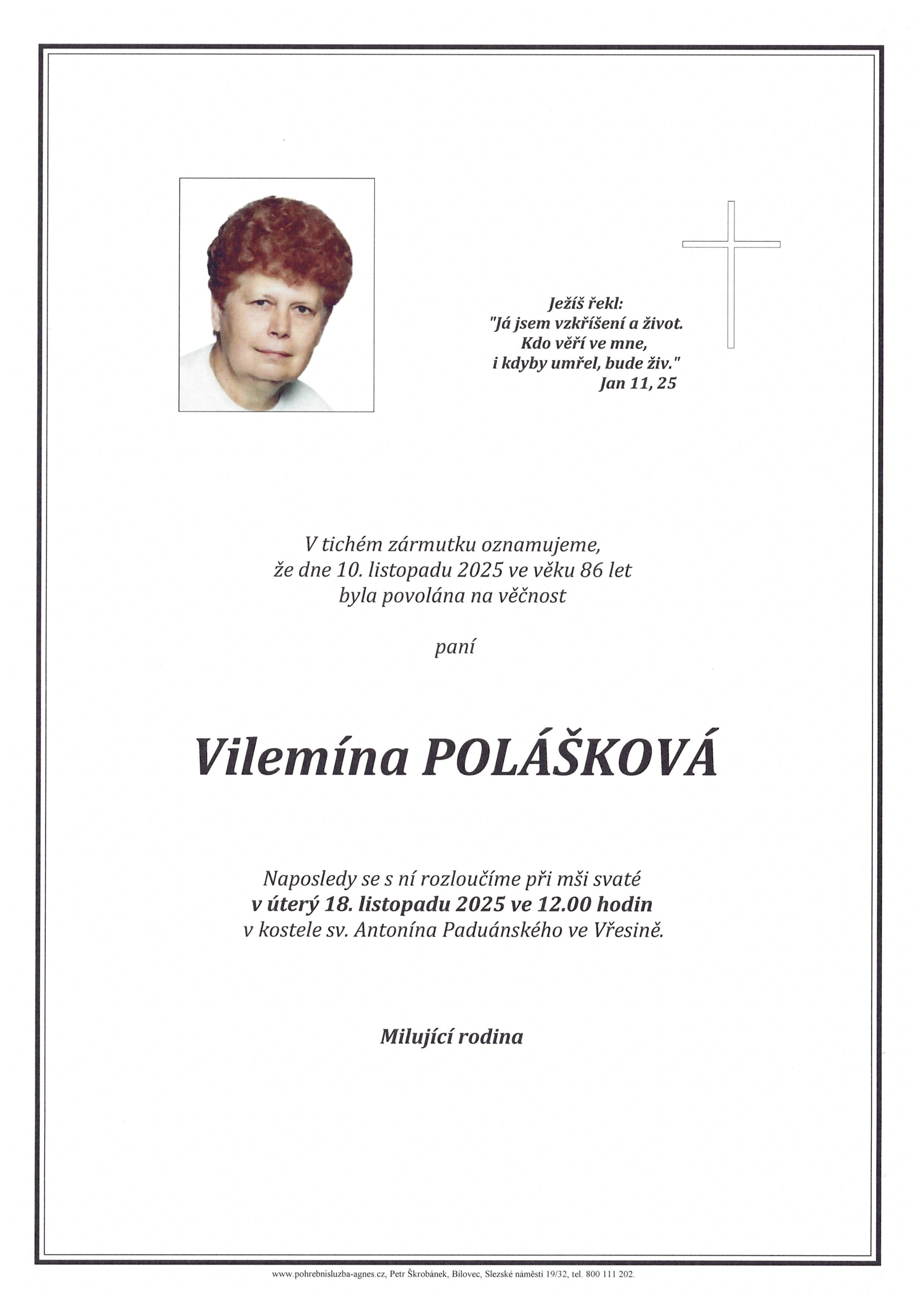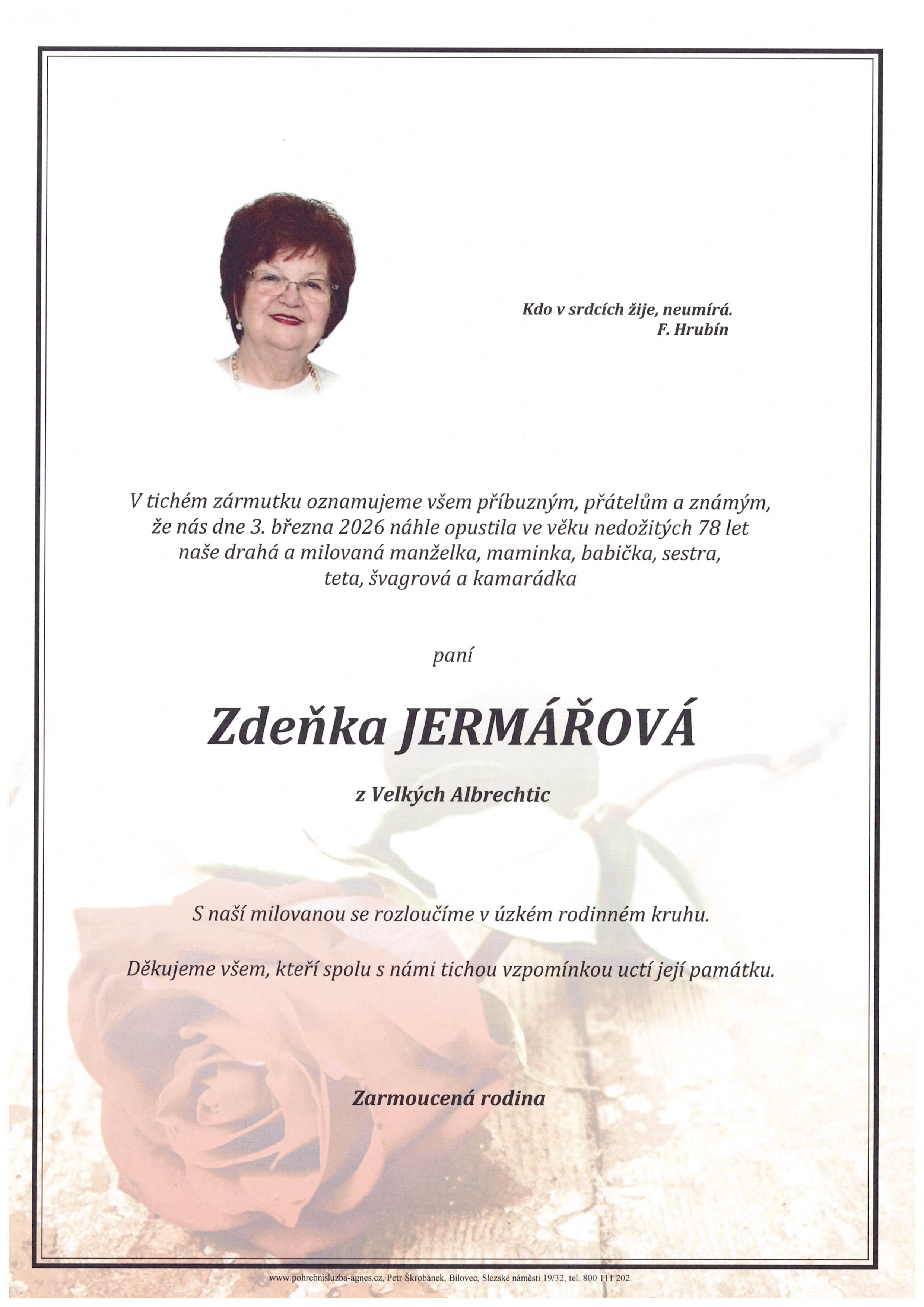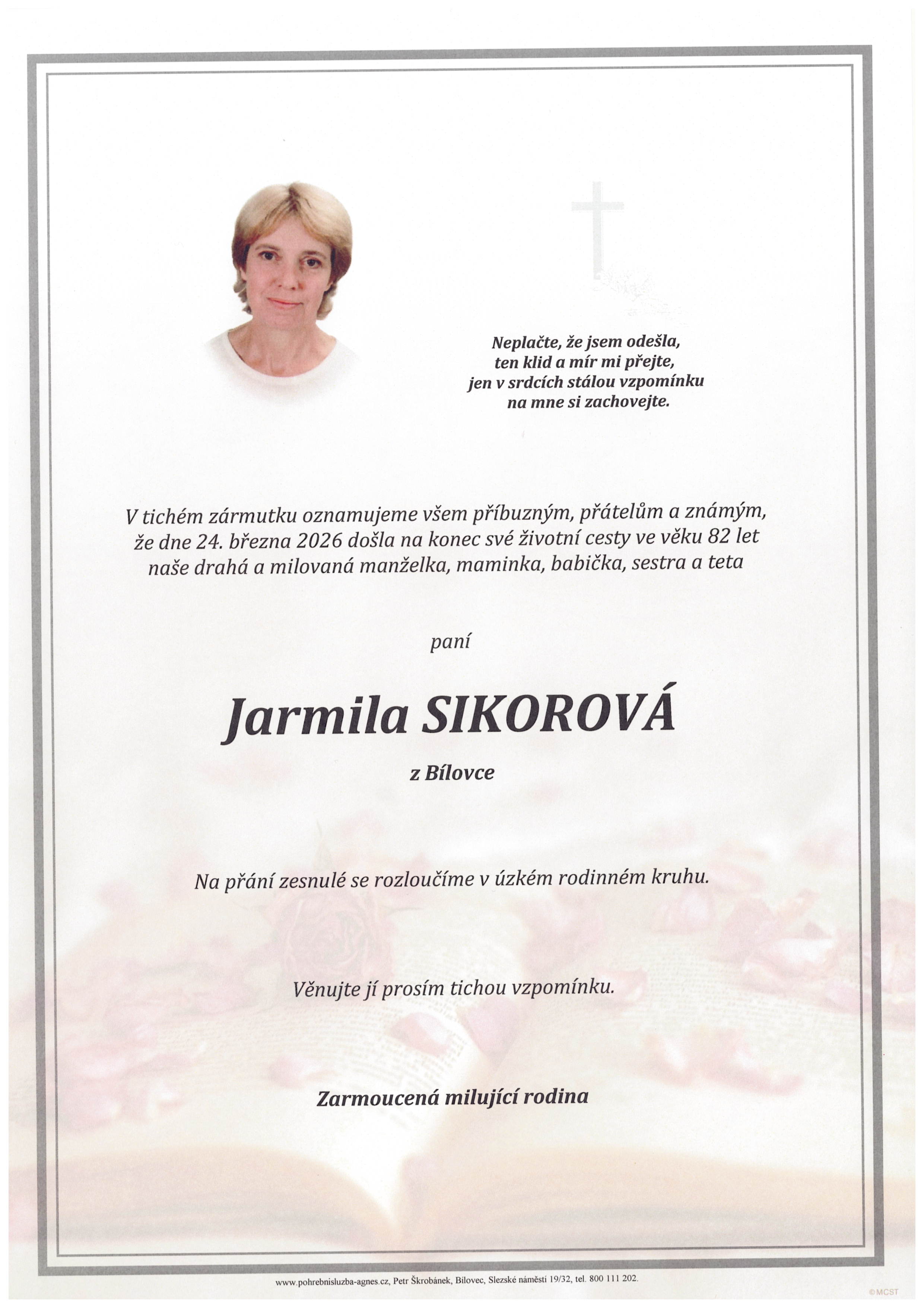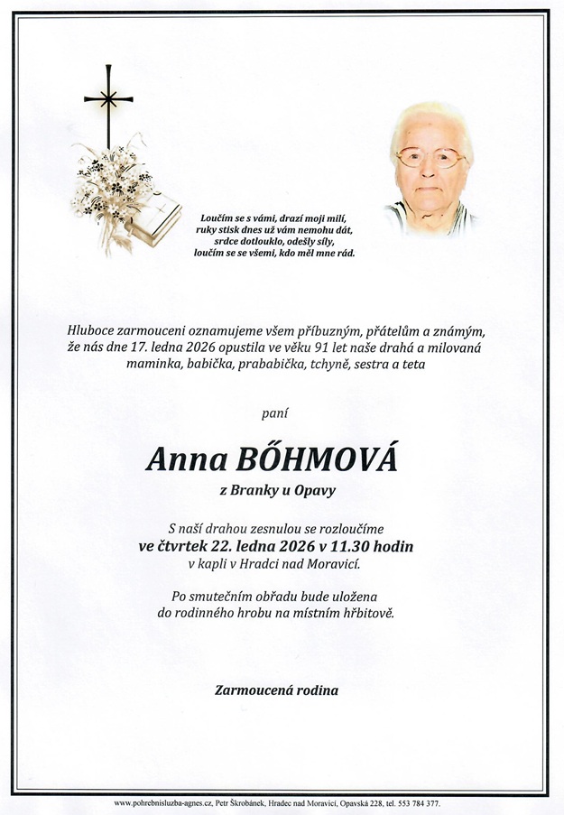 Aktuální rozloučení - pohřby | Pohřební služba St. Agnes, Bílovec, Opava, Hradec nad Moravicí, Studénka, Příbor, Fulnek
