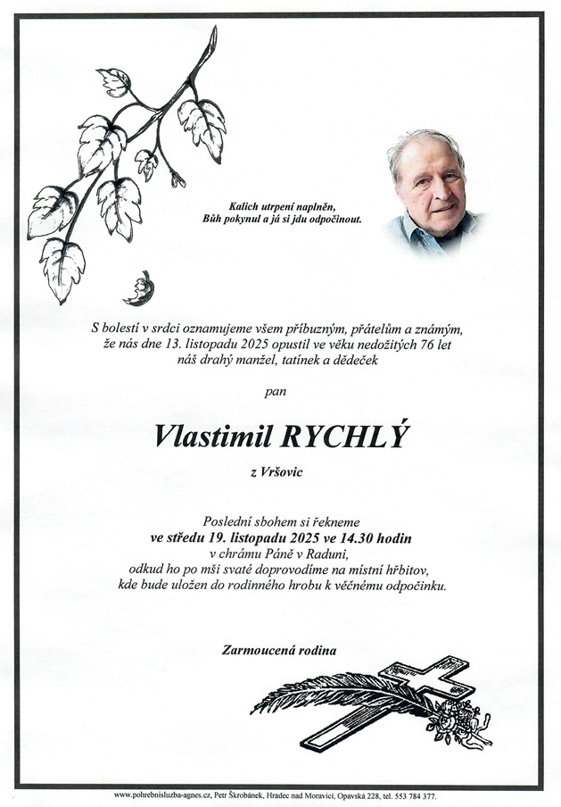 14.30 hodin Kostel Raduň - Vlastimil Rychlý, 75 let