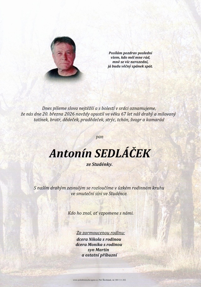 Antonín Sedláček, 67 let, Studénka