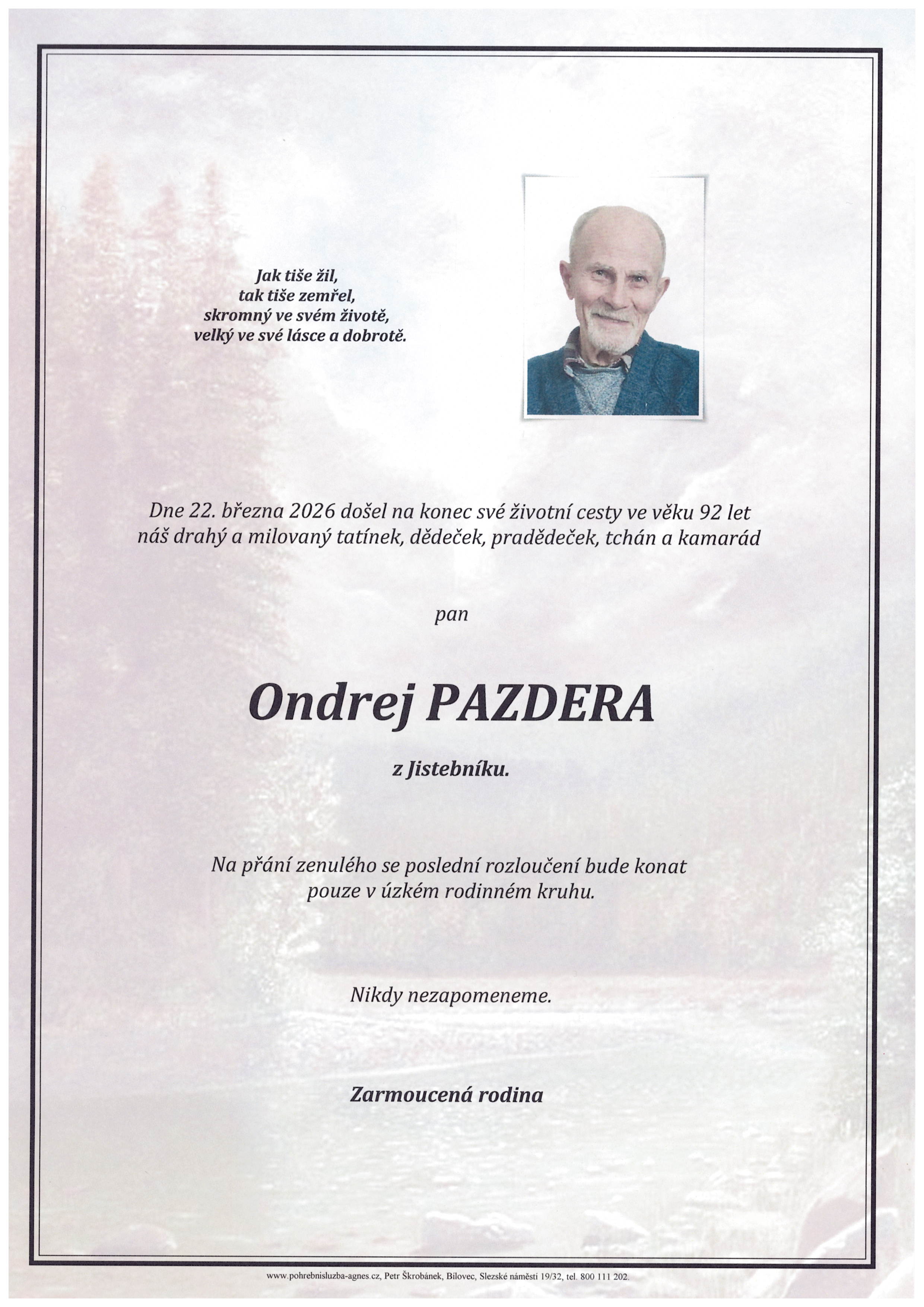 Ondrej Pazdera, 92 let, Jistebník