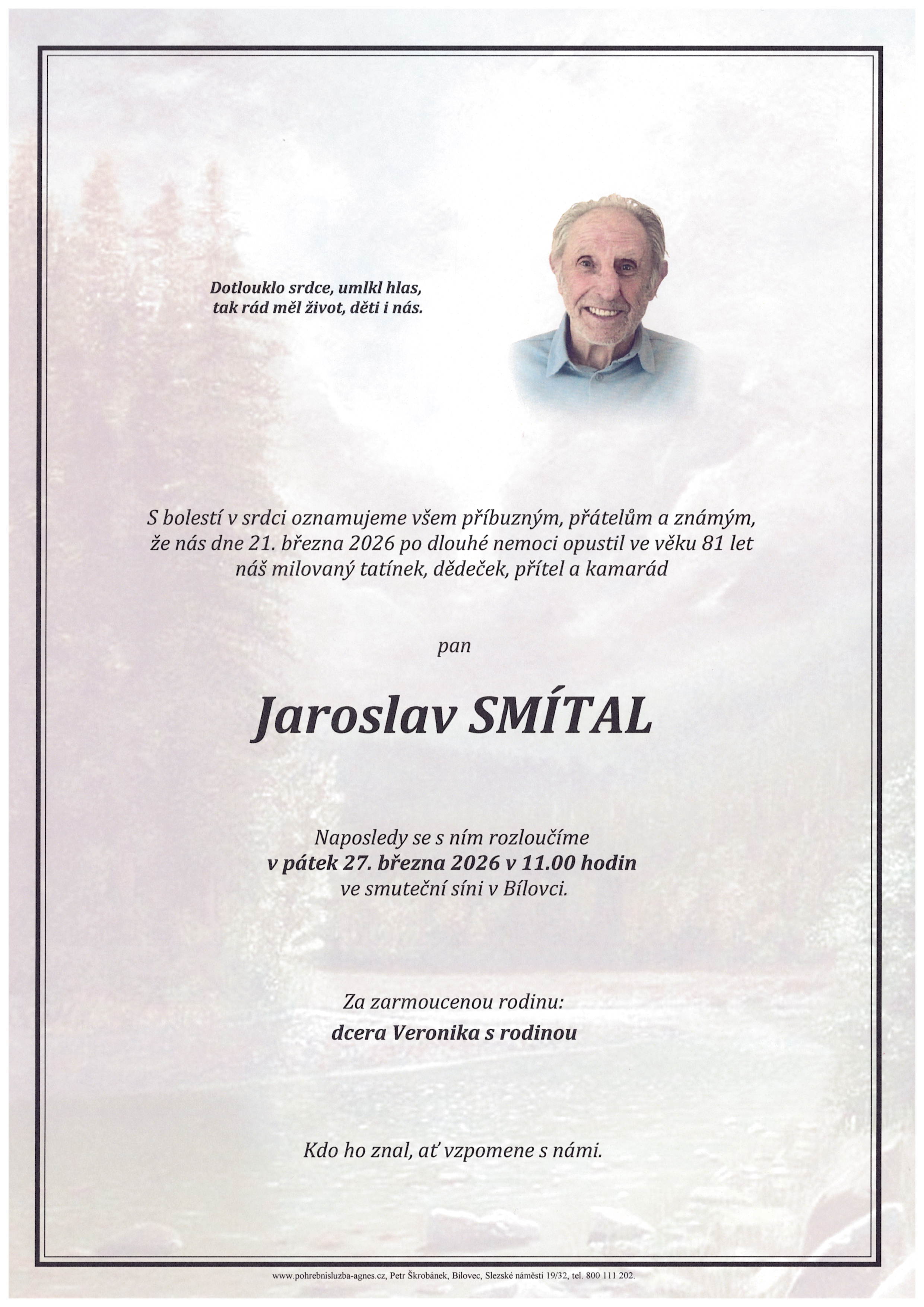 11.00 hodin Smuteční síň Bílovec - Jaroslav Smítal, 81 let