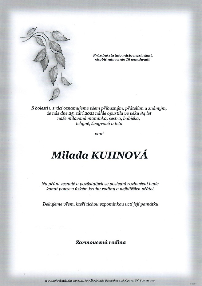Nacházíte se zde: www.pohrebnisluzba-agnes.cz » Archiv parte » 2021 » Září 2021