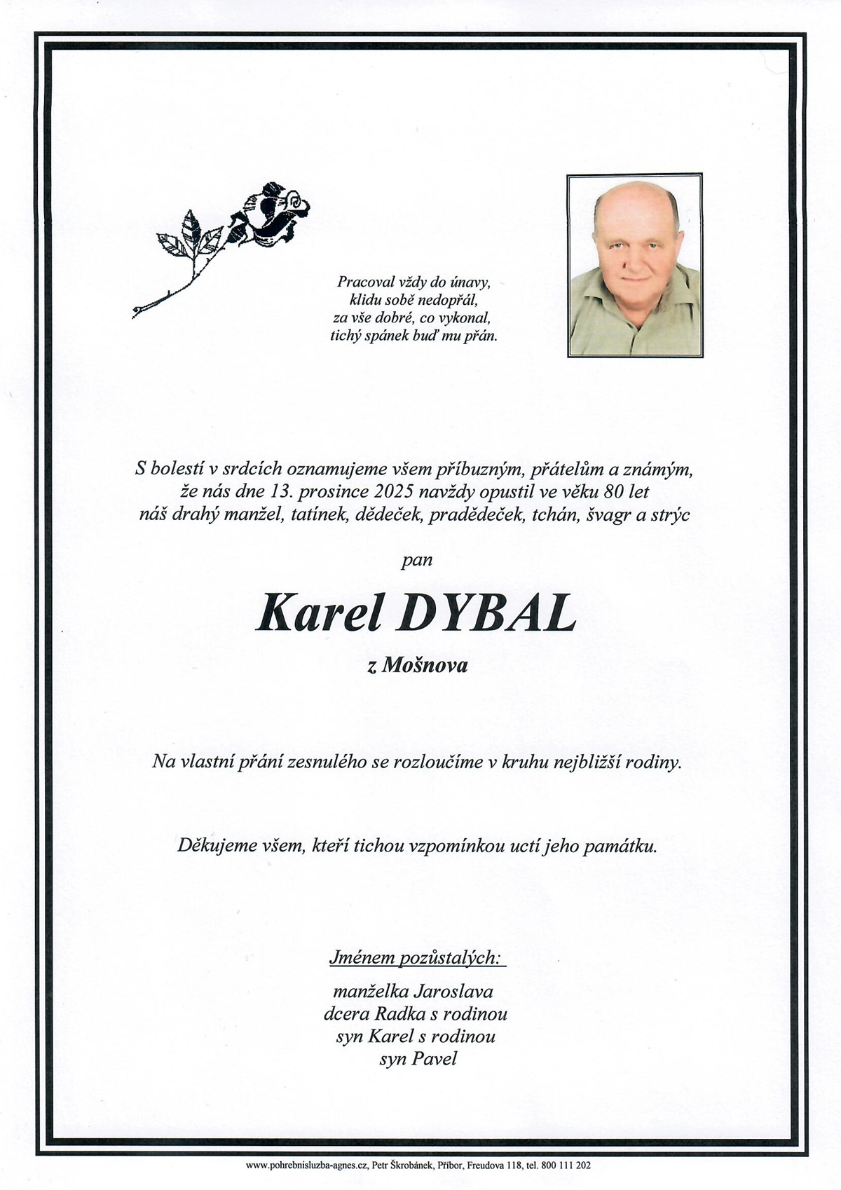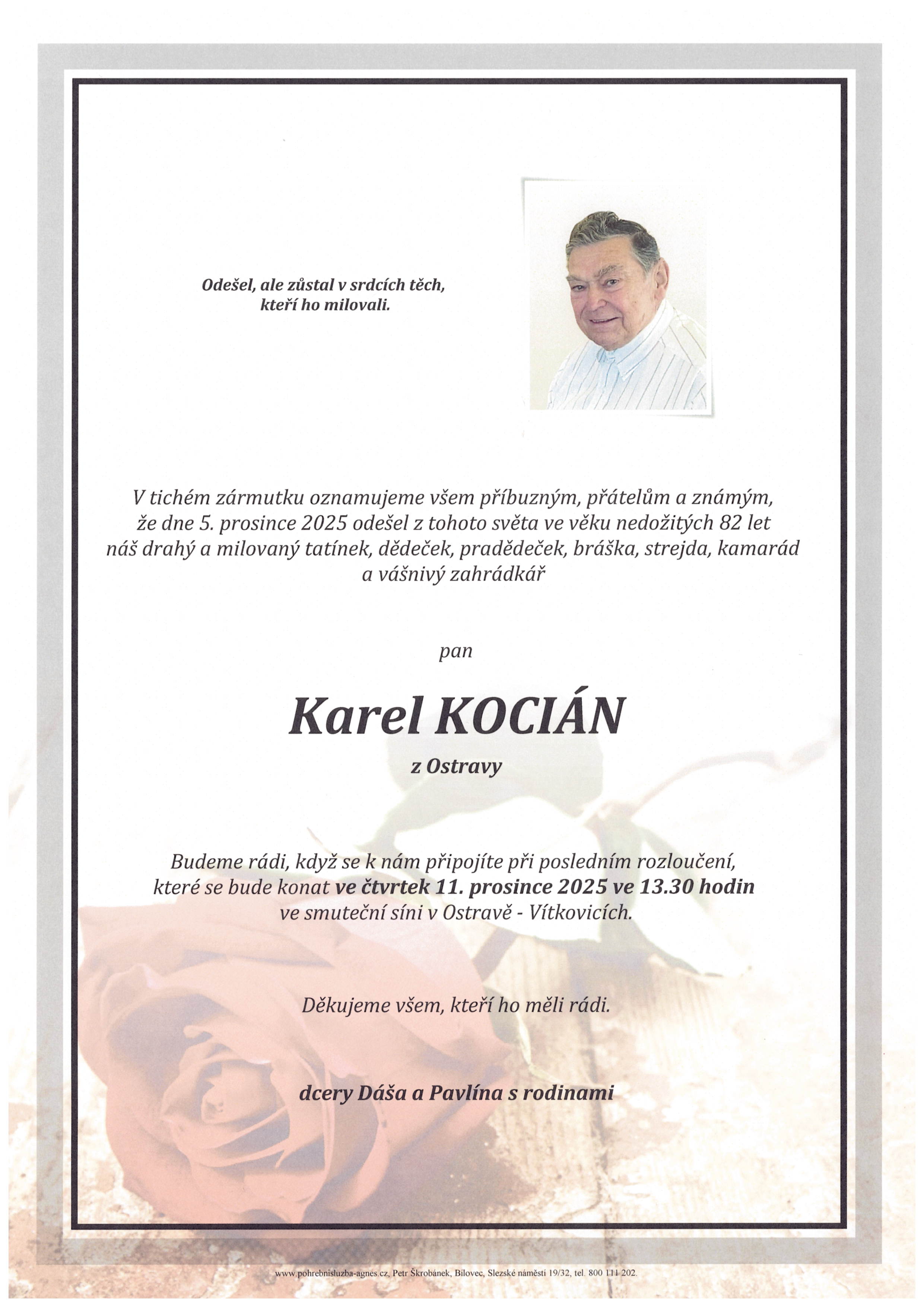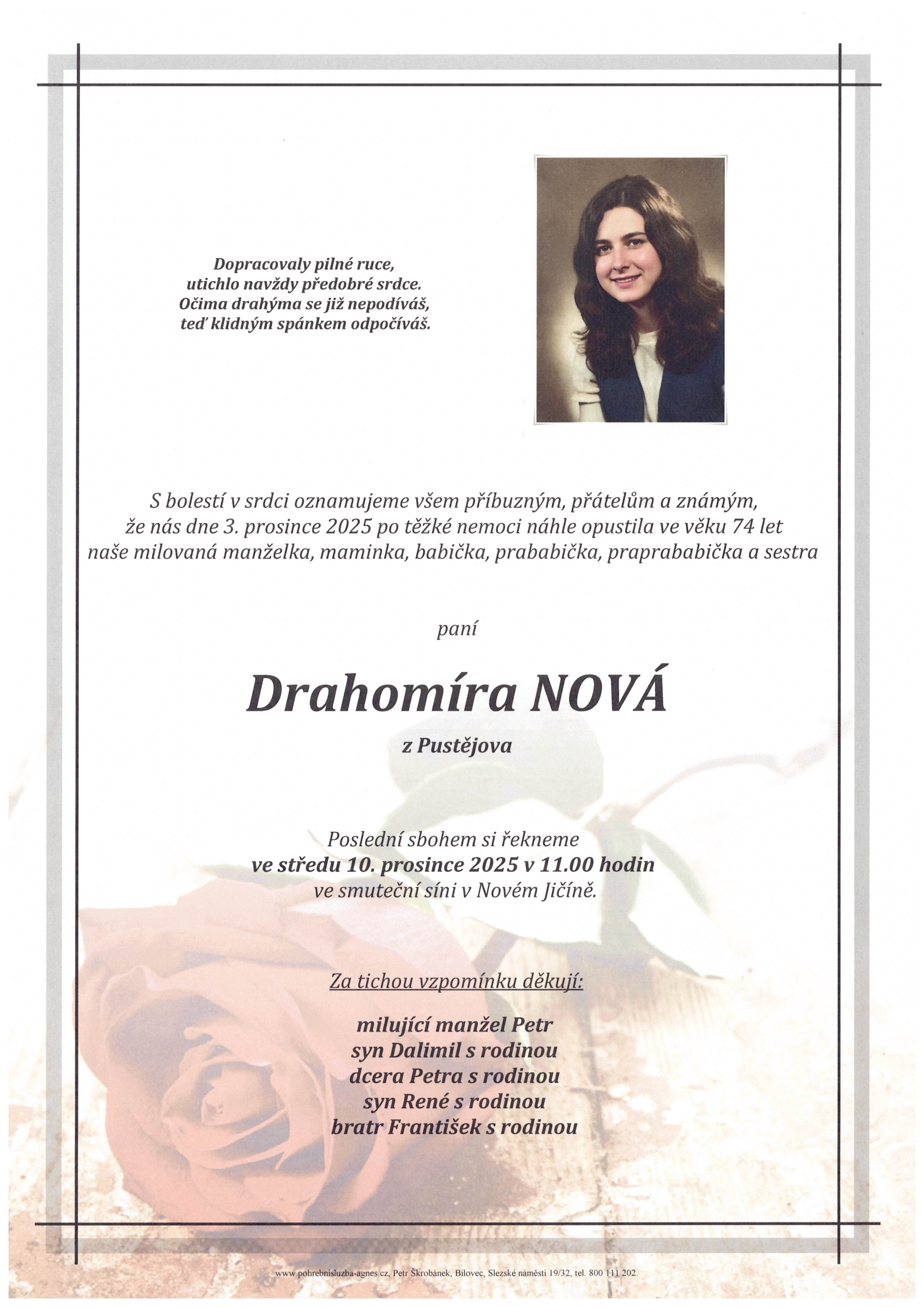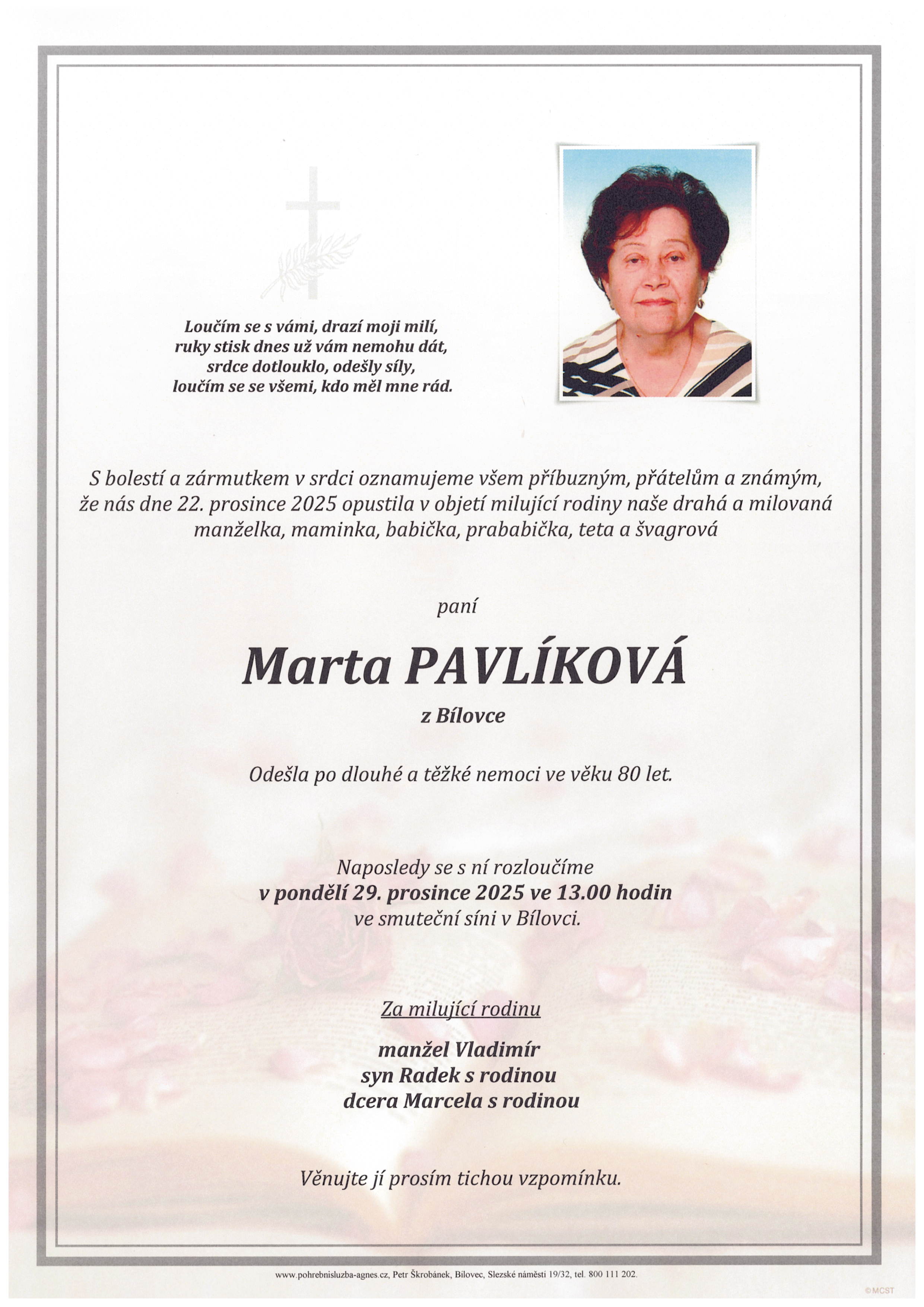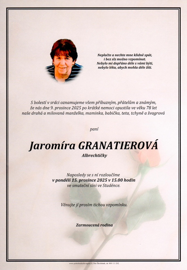 Přehled pohřbů a rozloučení obsahuje pouze ty obřady, u kterých objednavatel vyjádřil souhlas s uveřejněním.