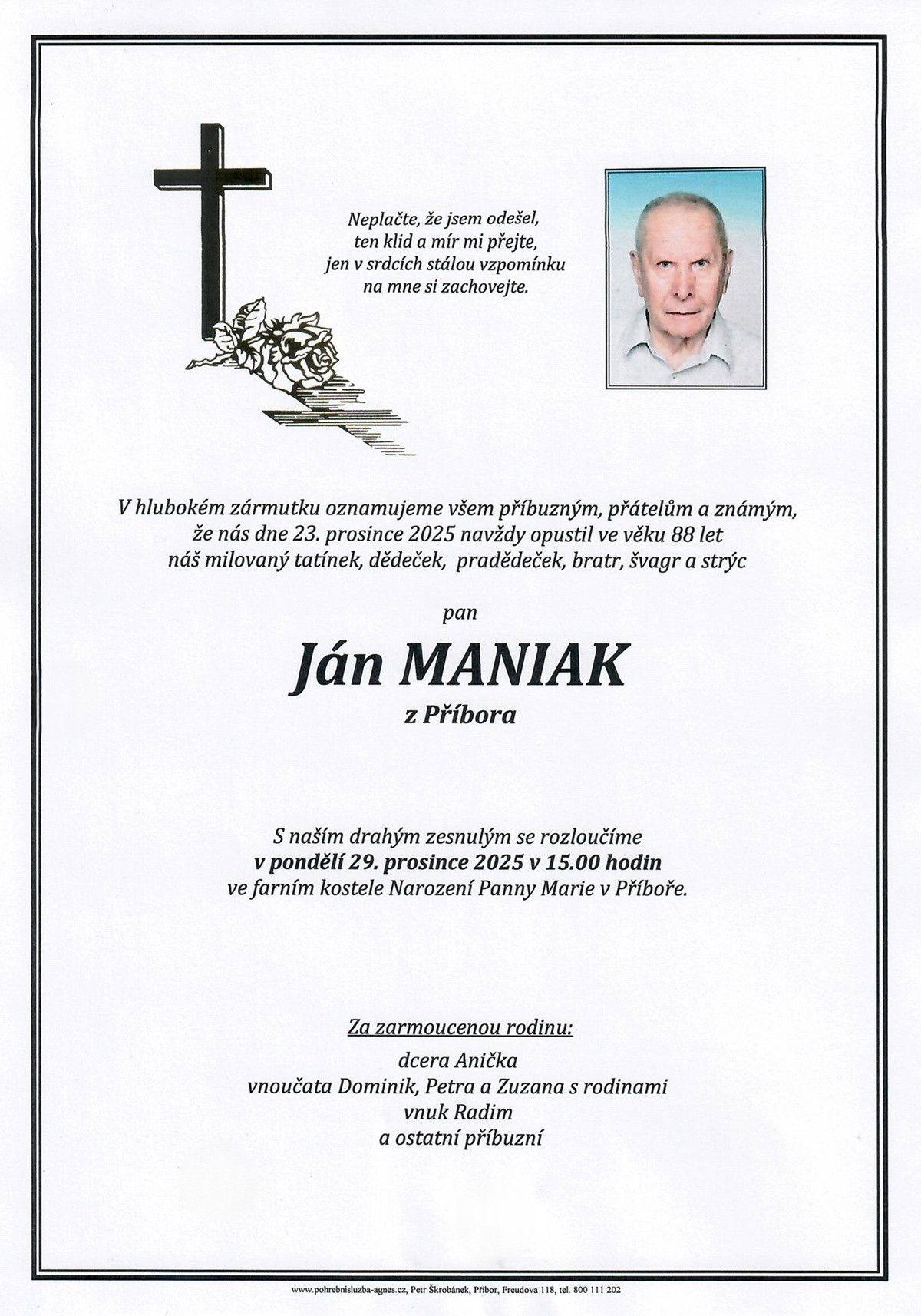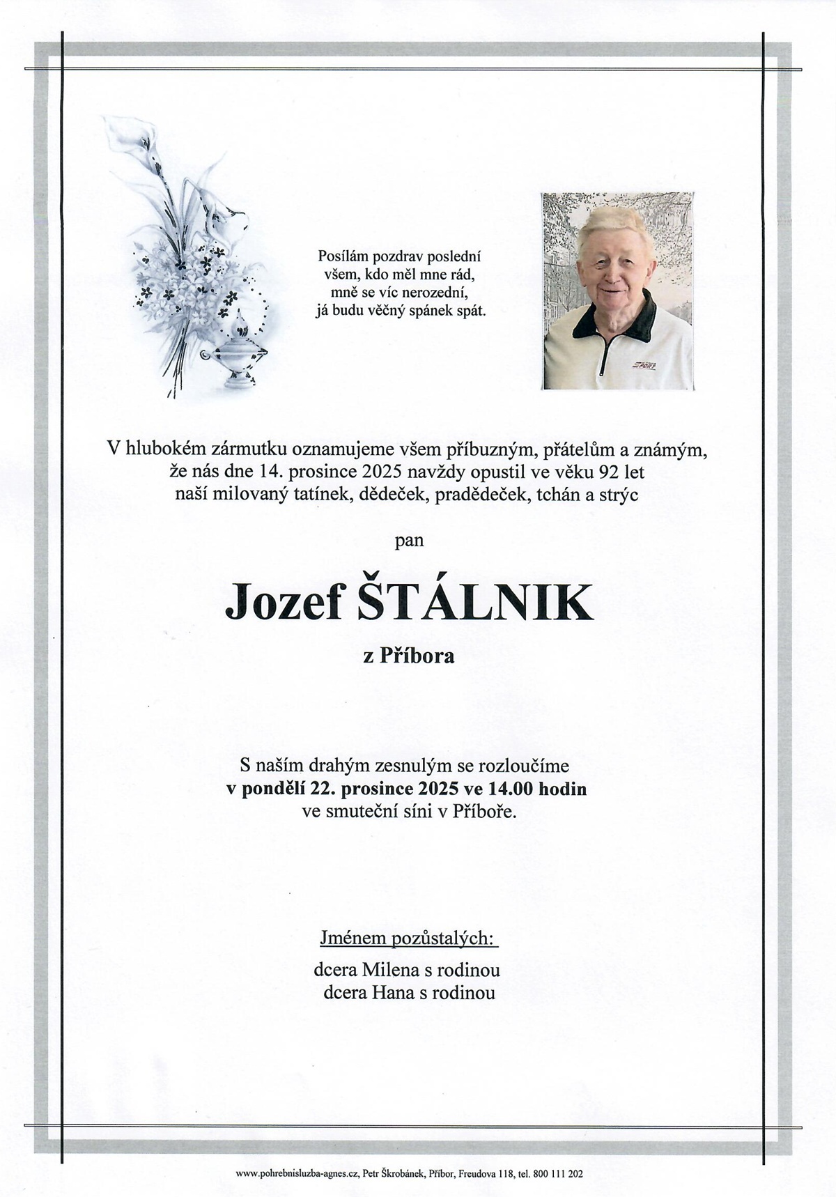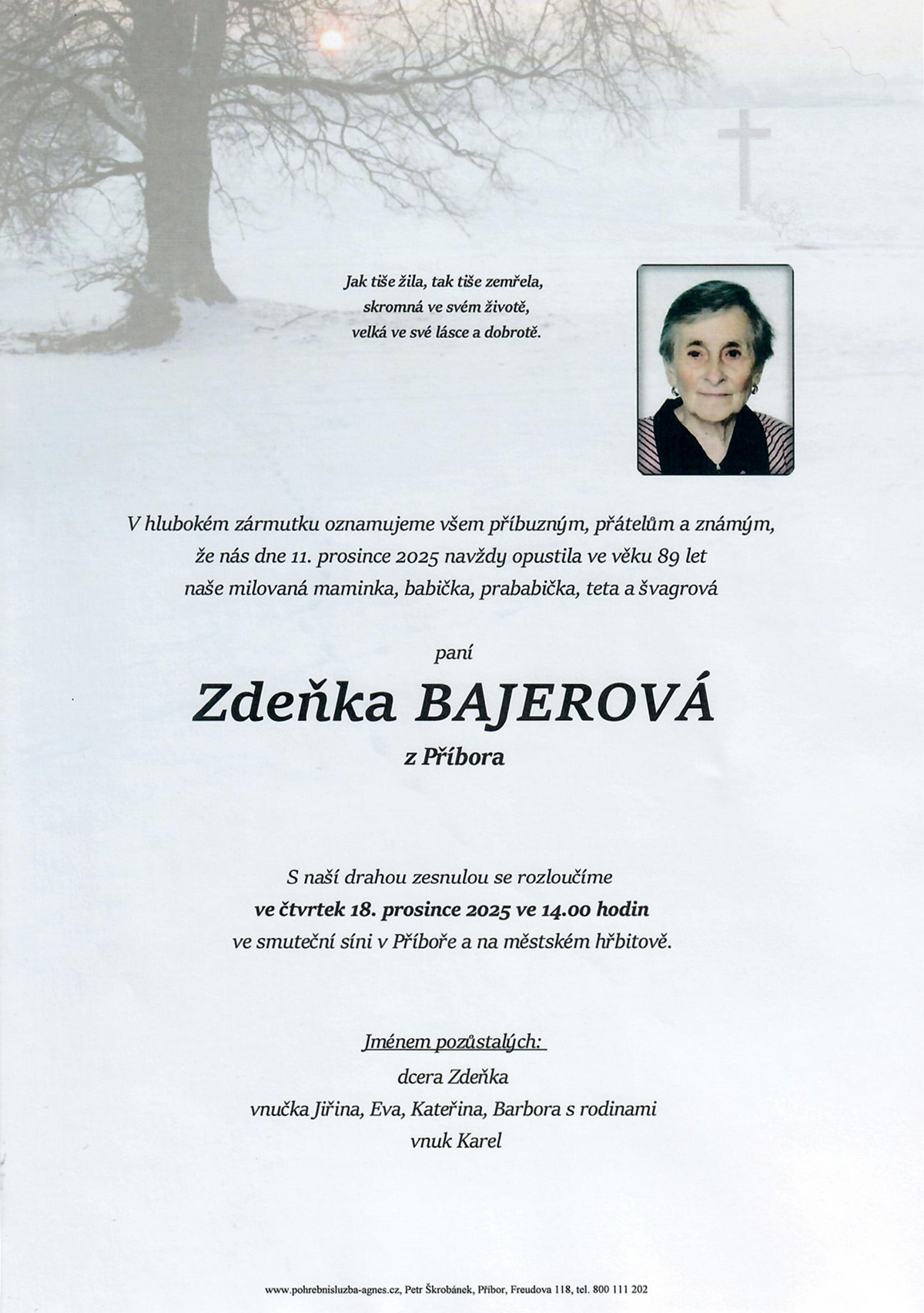 Prosinec 2025 | Pohřební služba St. Agnes, Bílovec, Opava, Hradec nad Moravicí, Studénka, Příbor, Fulnek