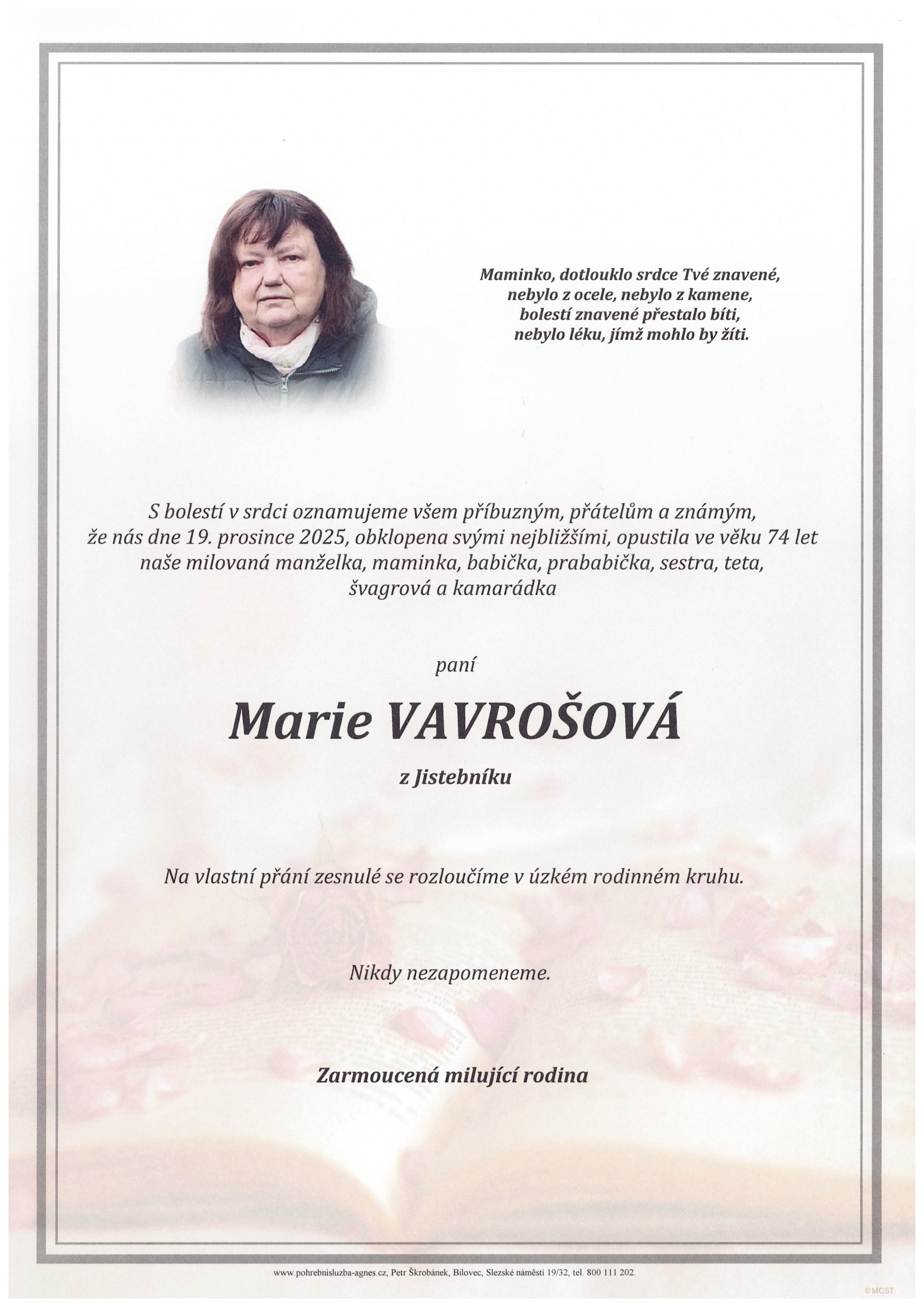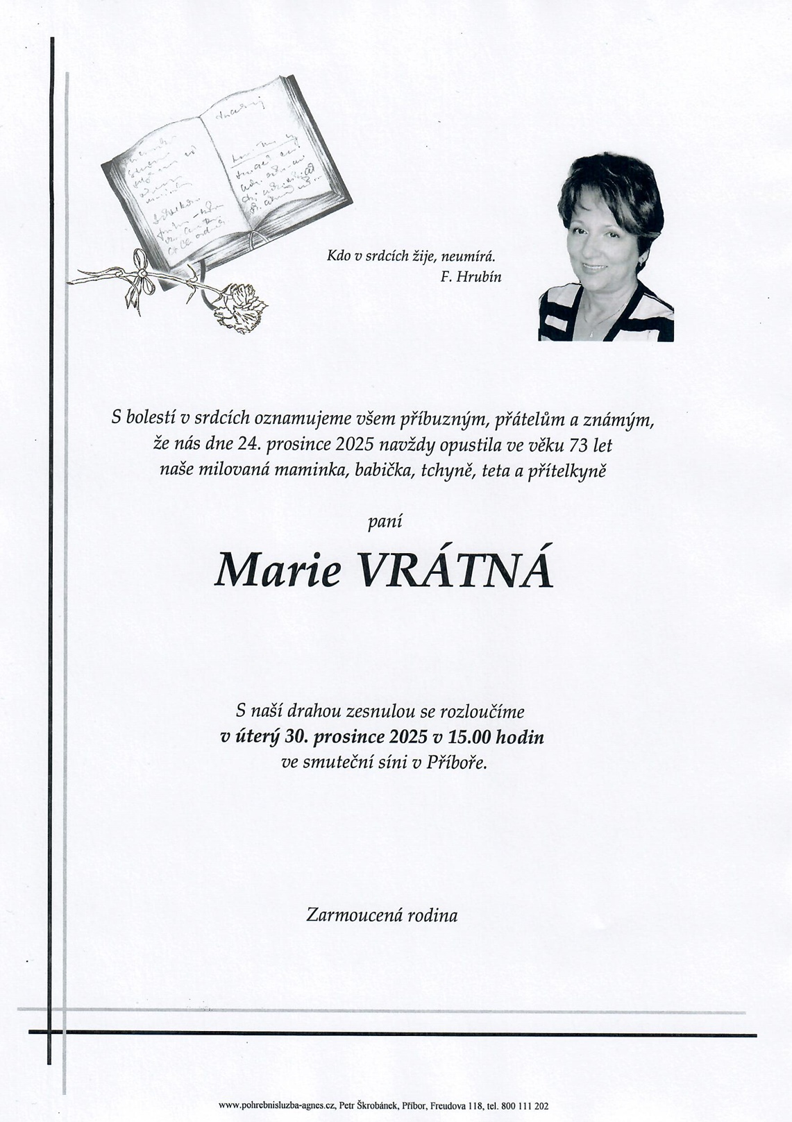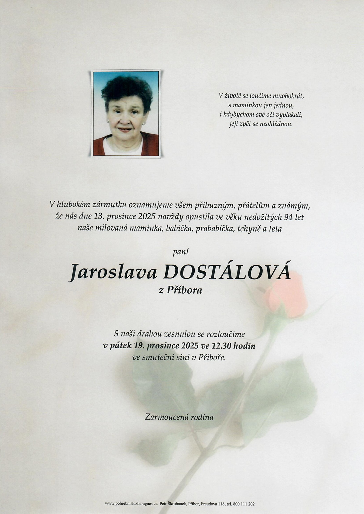 Prosinec 2025 | Pohřební služba St. Agnes, Bílovec, Opava, Hradec nad Moravicí, Studénka, Příbor, Fulnek