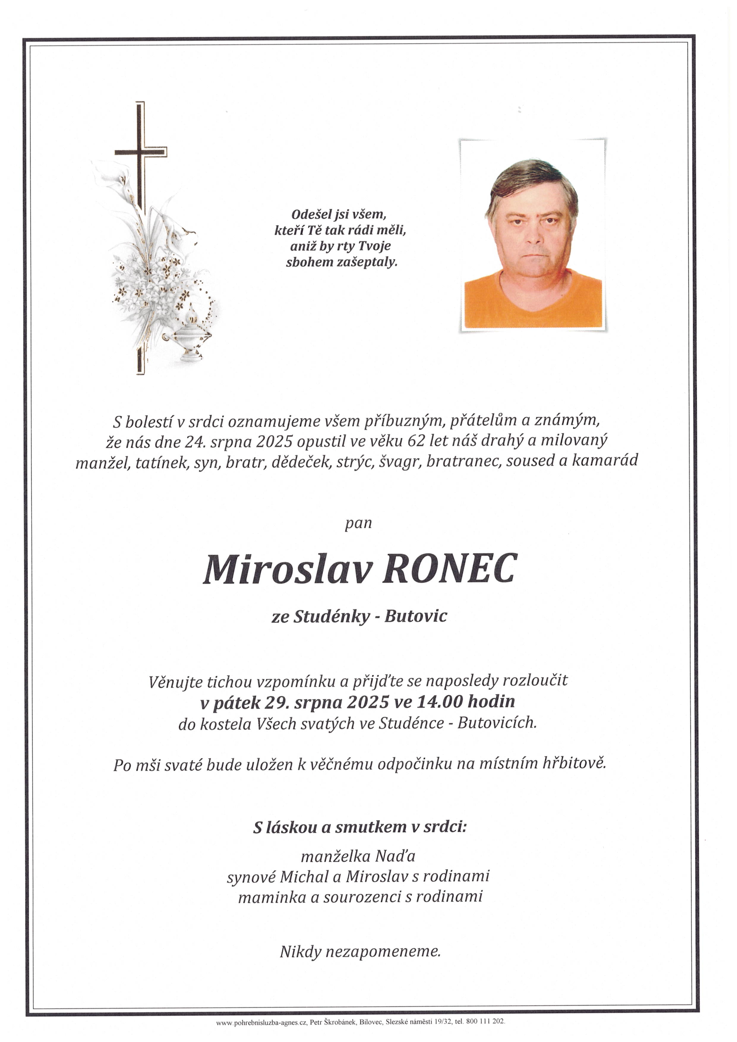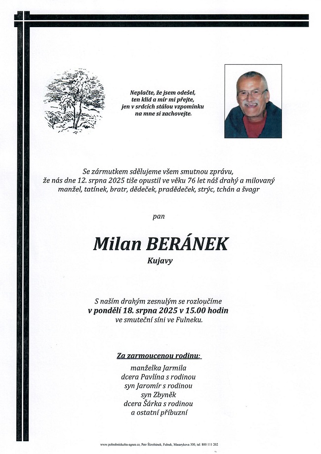 Nacházíte se zde: www.pohrebnisluzba-agnes.cz » Archiv parte » 2025 » Srpen 2025