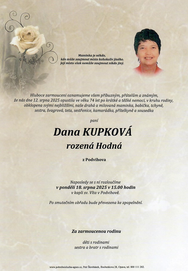 Srpen 2025 | Pohřební služba St. Agnes, Bílovec, Opava, Hradec nad Moravicí, Studénka, Příbor, Fulnek