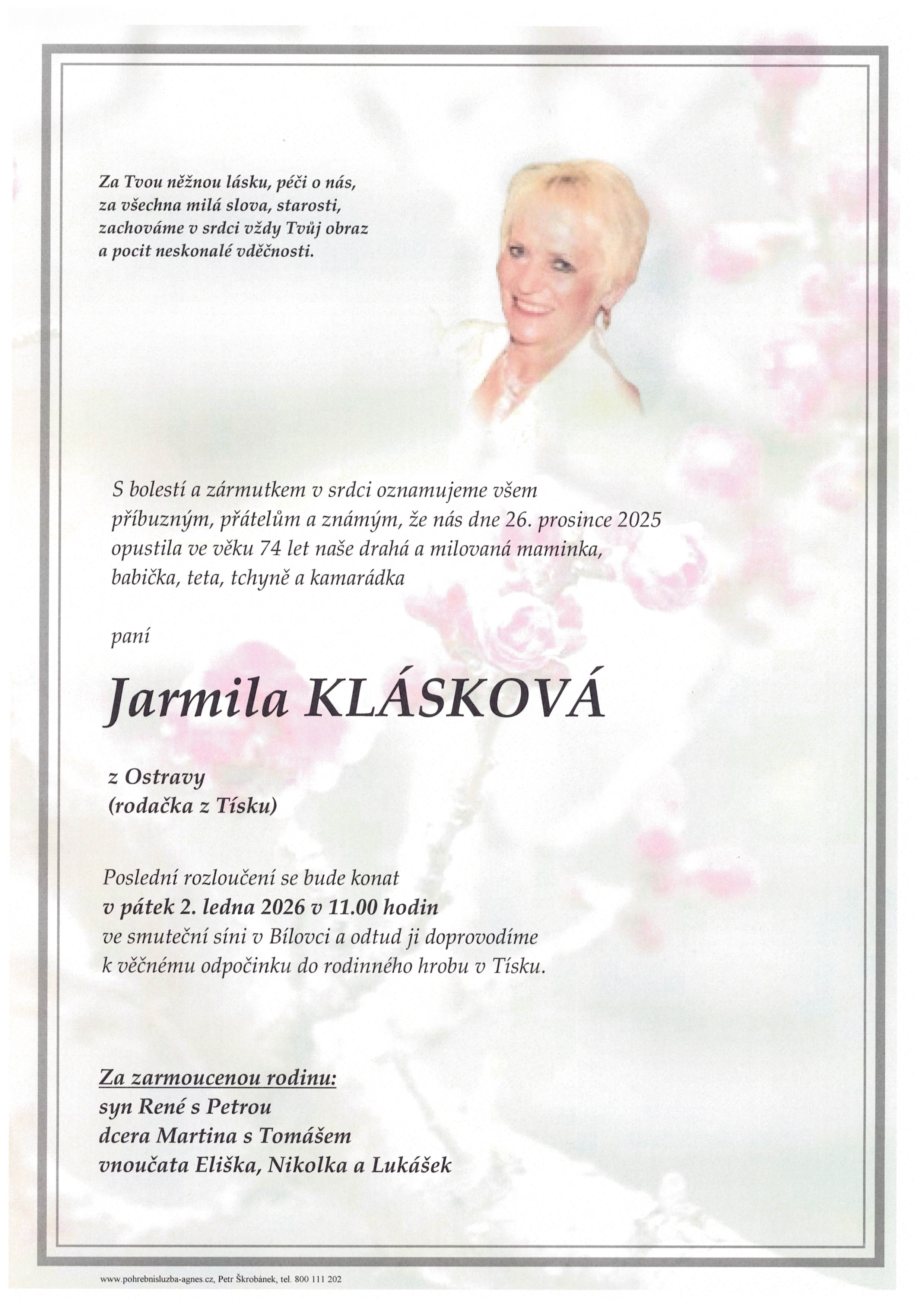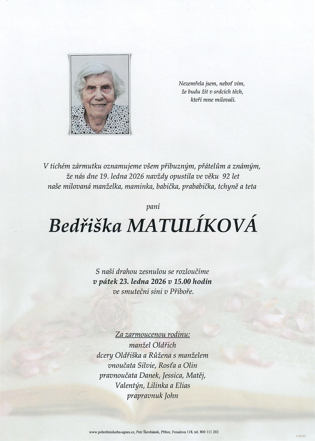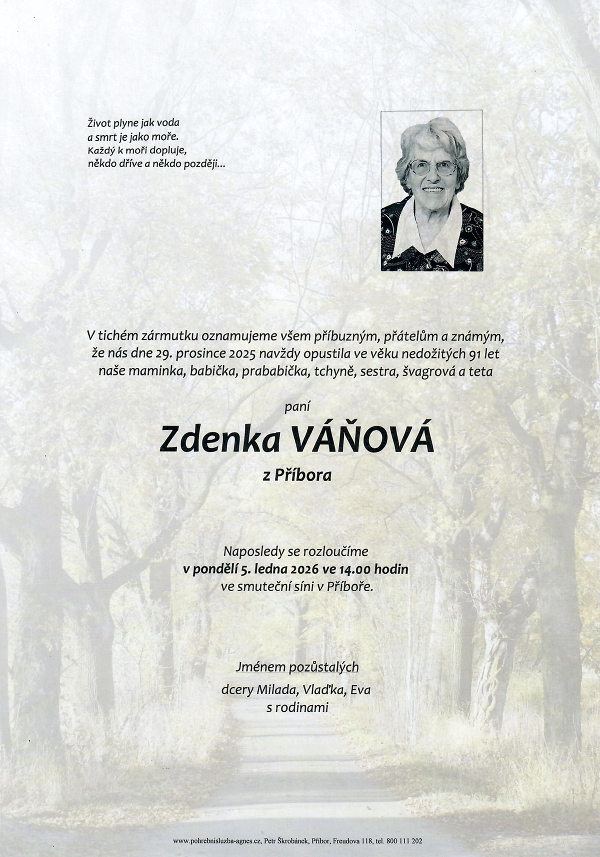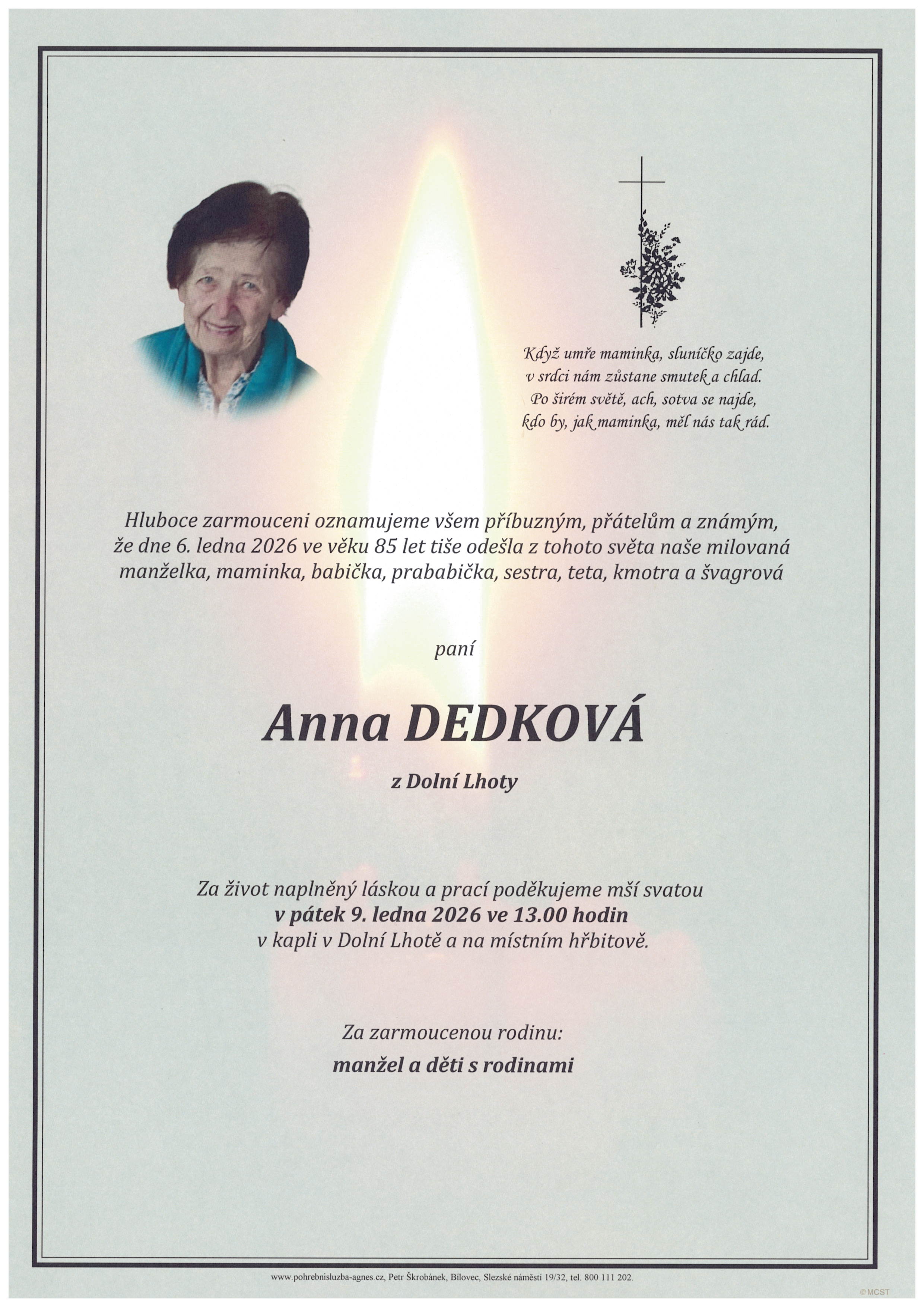 Leden 2026 | Pohřební služba St. Agnes, Bílovec, Opava, Hradec nad Moravicí, Studénka, Příbor, Fulnek
