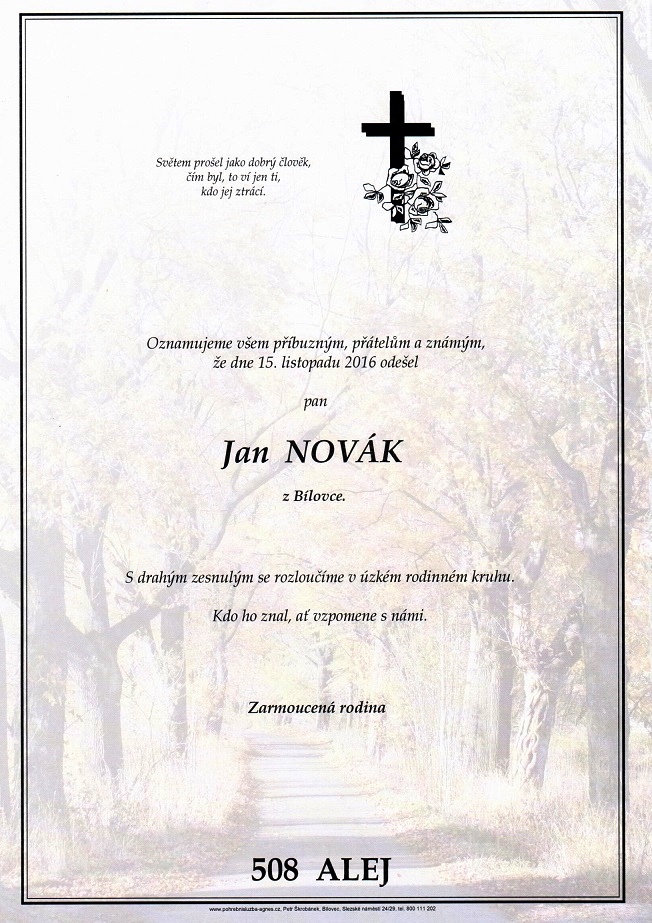 Parte - ukázka podtisků | Pohřební služba St. Agnes, Bílovec, Opava, Hradec nad Moravicí, Studénka, Příbor, Fulnek