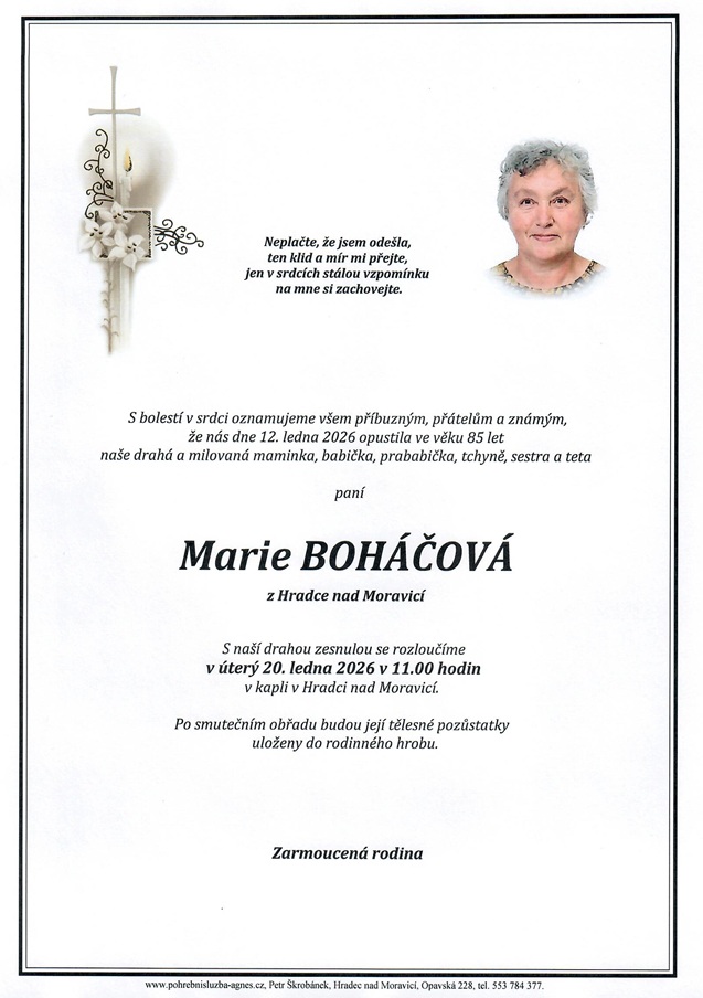 11.00 hodin Kaple Hradec nad Moravicí - Marie Boháčová, 85 let
